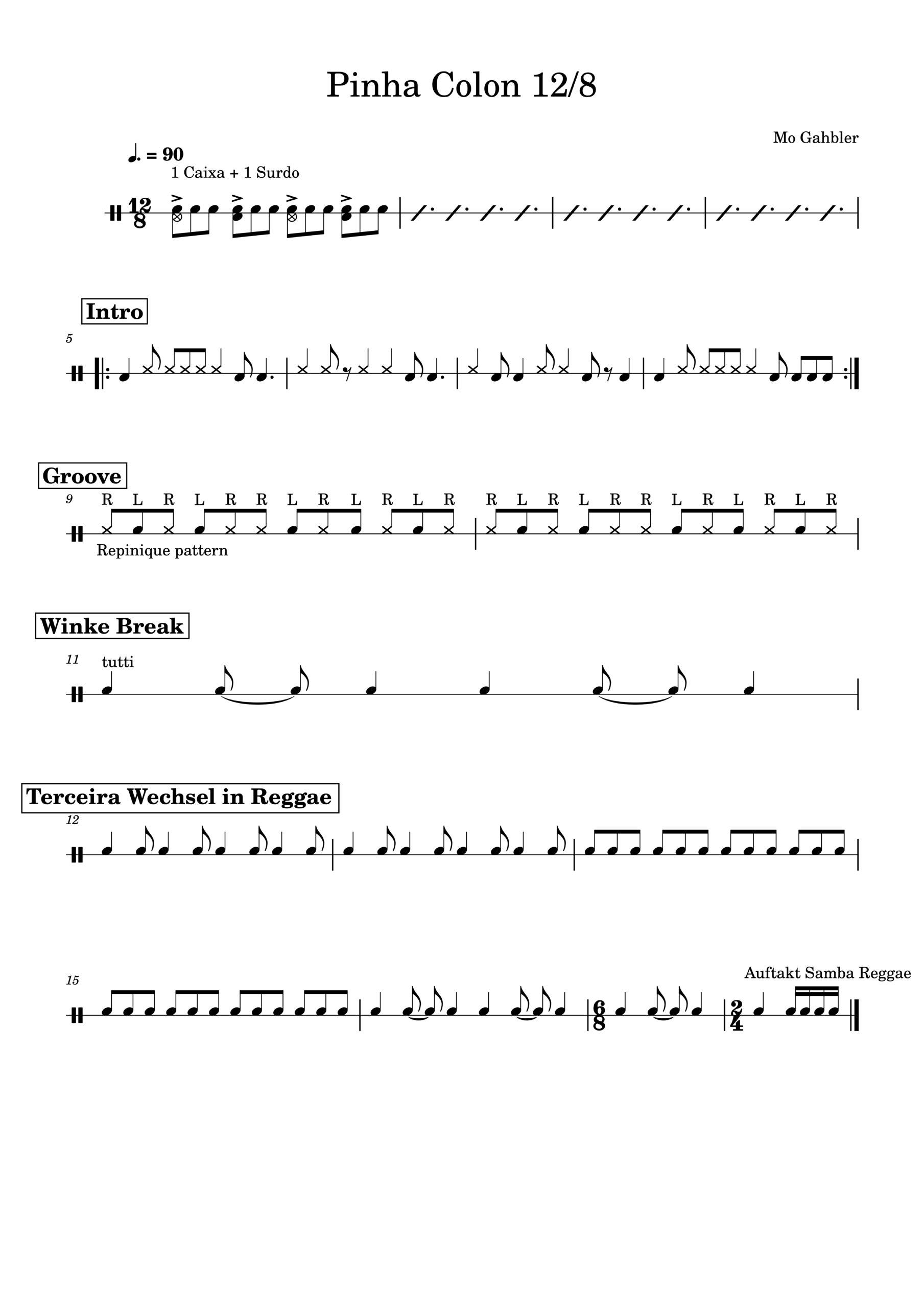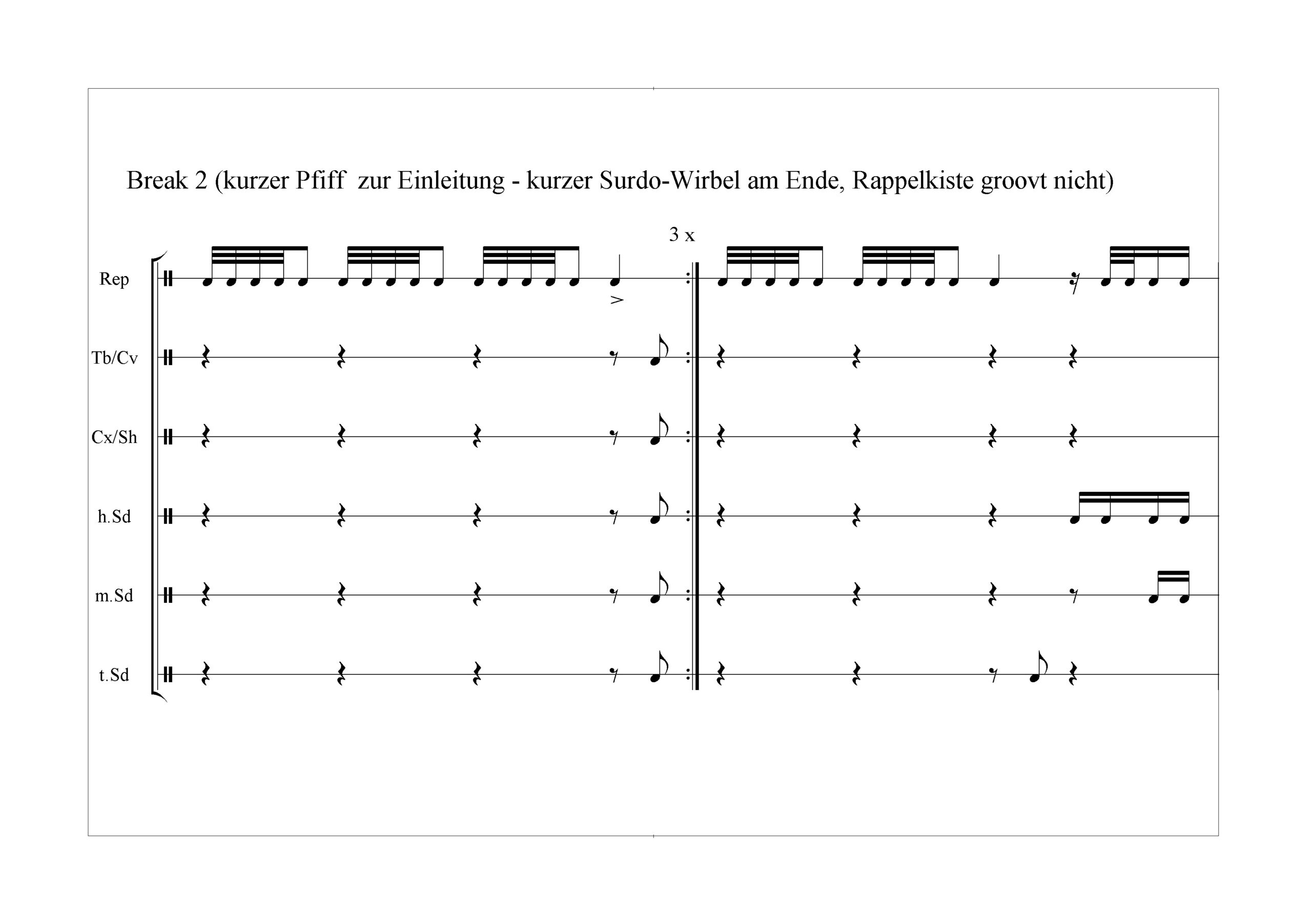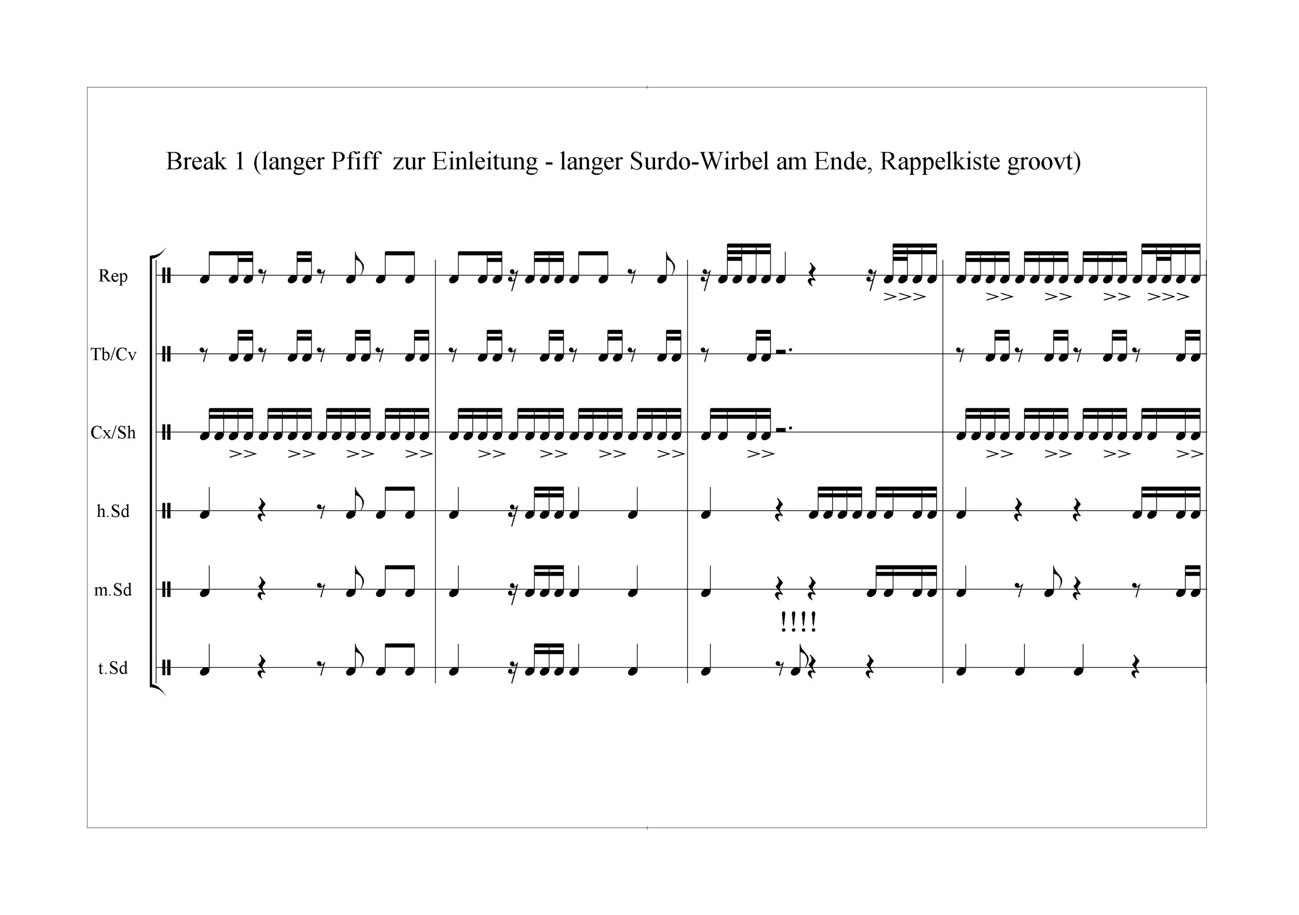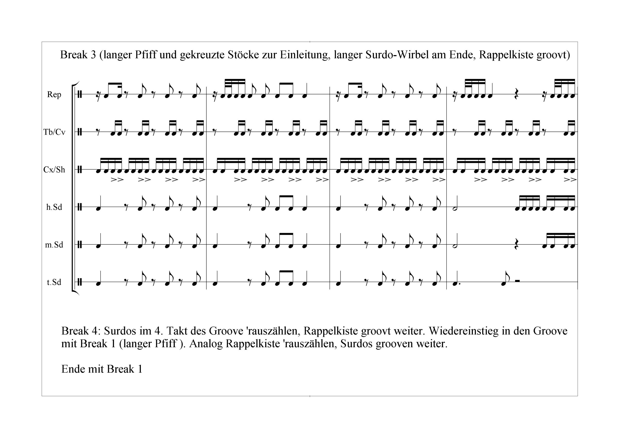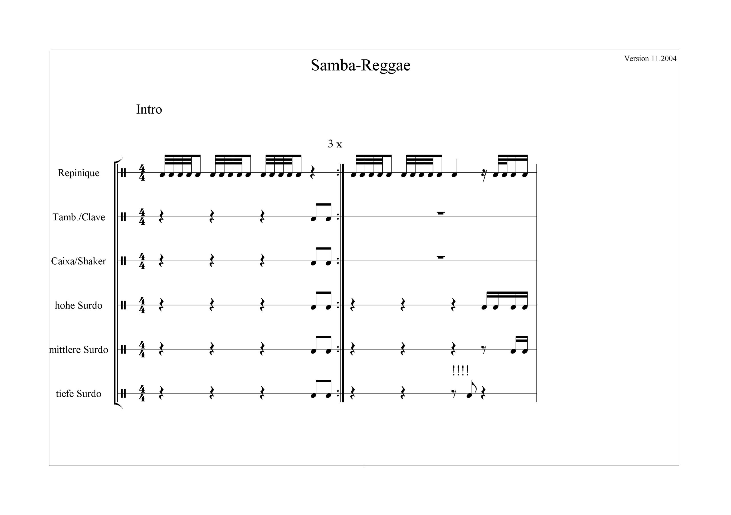 Samba-Reggae-Noten Samba-Reggae-Noten Intro-BreakBreak 1Break 2Schneller GrooveKreuz-BreakKonversation-Break12/8-tel (Intro, Repi pattern, Breaks)